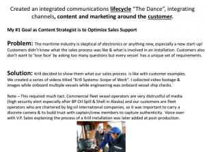 Allow and trust your company’s culture to shine. Whether it be through text, images and video, the unique character of what makes your culture special is the reason why people will buy from you and not your competitors. Inbound content marketing has a distinct advantage by attracting prospective customers through online thought-leadership (You are expert in your industry, let it come out).